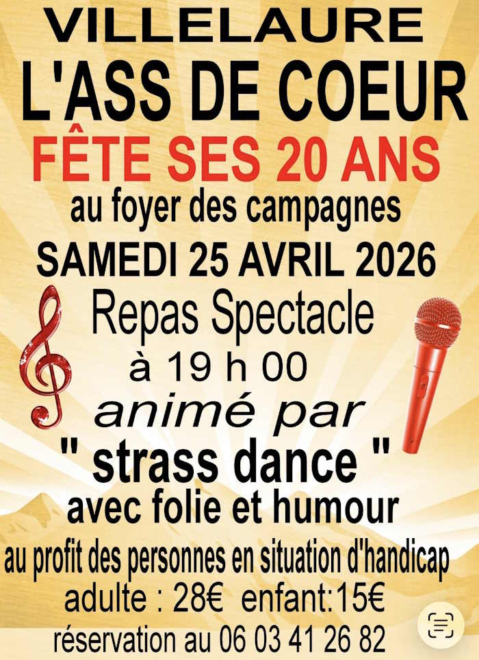 [Région] VILLELAURE fête les 20 ans de l'Ass de Coeur samedi 25 avril 2026